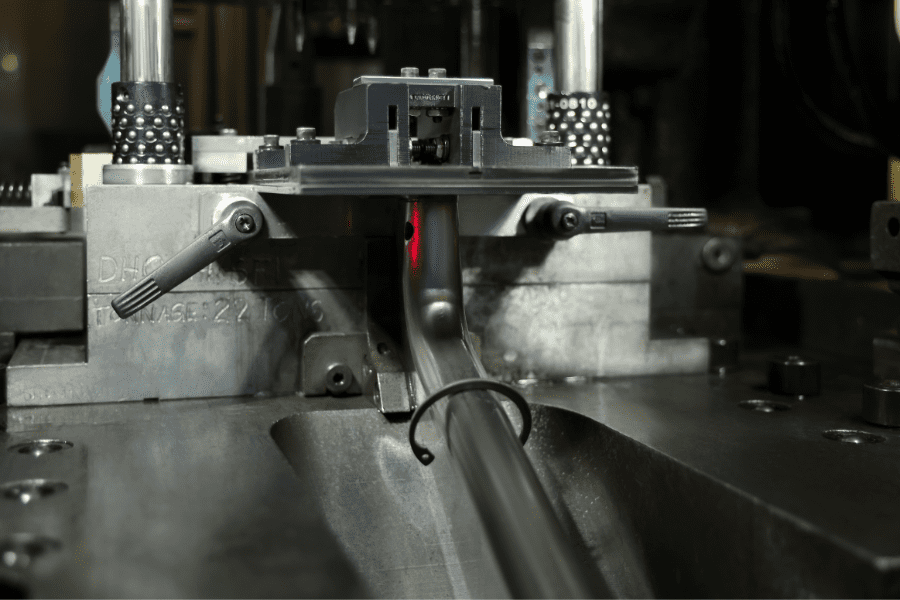 Rotor Clip verfügt über einen eigenen Werkzeug- und Formenbau und ein umfangreiches Team von Fachleuten für den Werkzeugbau. Wir entwickeln und bauen viele Modifikationen, die die hocheffiziente und präzise Herstellung von gestanzten Sicherungsringen ermöglichen. Ob es sich um den Bau von Maschinenzubehör zur Reduzierung von Ausschuss oder zur Verbesserung der Zuführgenauigkeit handelt oder um die Integration von Stapel- und Verpackungsprozessen in die Stanzmaschinen zur automatisierten Montage, Rotor Clip betreibt einen großen Aufwand zur Verbesserung des Stanzprozesses ein.